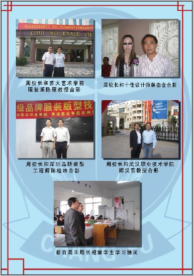 周校长 92年毕业于苏大服装设计专业,先后在苏州,上海,广东,深圳等地多家服装公司,担任过服装设计师,制版师,版房主管,技术厂长,生产经理等,近年来被评为国家级服装制版师考评员,国家级服装制版师裁判员,高级服装技师、服装高级工程师、中国服装设计师协会技术委员,中国十佳服装学校校长,常熟市拔尖技术人才等众多荣誉称号,从事过内外销,针梭织以及男女童装等设计制版,积累了近20年的一线工作经验,先后求学于意大利男装之父安东呢奥,国内服装专家冯翼、丁凤其等多位专家及多次出席国内服装技术论坛和一些服装杂志报纸发表多篇技术文章,曾荣获丽人杯结构设计优秀奖,多年一直从事服装结构研究,从合身低腰裤到女上装4种基型,男装八种基型以及外销欧美版型,针织,梭织等结构造型都有独到的见解,其中(常熟)休闲男茄克更是分析得精辟到位,从挂装到包装,从合颈立领唐装等到翻领分领坐,尤其是合体一片袖做的效果可以与西装袖比美,而且更实用舒适,版型被很多男式休闲茄克厂家购买和被指导服装企业聘请为高级顾问。他一直重视以实践教学,引到学生去划去做,深入理解,受到众多学生和企业技术人员好评,从不去自吹自擂,更不去吹什么帮派,什么绝技,专利(其实服装这门技术有些不能算专利)等,而是脚踏实地教好每位学生,不但教会他们实用服装技术,而且教会他们怎么去适应社会,怎么去做人,也正因为他这样认真负责,一批批学生都能学到扎实的技术,顺利地就业,分布全国各地,桃李满天下