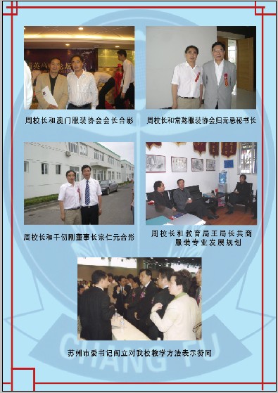周校长 92年毕业于苏大服装设计专业,先后在苏州,上海,广东,深圳等地多家服装公司,担任过服装设计师,制版师,版房主管,技术厂长,生产经理等,近年来被评为国家级服装制版师考评员,国家级服装制版师裁判员,高级服装技师、服装高级工程师、中国服装设计师协会技术委员,中国十佳服装学校校长,常熟市拔尖技术人才等众多荣誉称号,从事过内外销,针梭织以及男女童装等设计制版,积累了近20年的一线工作经验,先后求学于意大利男装之父安东呢奥,国内服装专家冯翼、丁凤其等多位专家及多次出席国内服装技术论坛和一些服装杂志报纸发表多篇技术文章,曾荣获丽人杯结构设计优秀奖,多年一直从事服装结构研究,从合身低腰裤到女上装4种基型,男装八种基型以及外销欧美版型,针织,梭织等结构造型都有独到的见解,其中(常熟)休闲男茄克更是分析得精辟到位,从挂装到包装,从合颈立领唐装等到翻领分领坐,尤其是合体一片袖做的效果可以与西装袖比美,而且更实用舒适,版型被很多男式休闲茄克厂家购买和被指导服装企业聘请为高级顾问。他一直重视以实践教学,引到学生去划去做,深入理解,受到众多学生和企业技术人员好评,从不去自吹自擂,更不去吹什么帮派,什么绝技,专利(其实服装这门技术有些不能算专利)等,而是脚踏实地教好每位学生,不但教会他们实用服装技术,而且教会他们怎么去适应社会,怎么去做人,也正因为他这样认真负责,一批批学生都能学到扎实的技术,顺利地就业,分布全国各地,桃李满天下