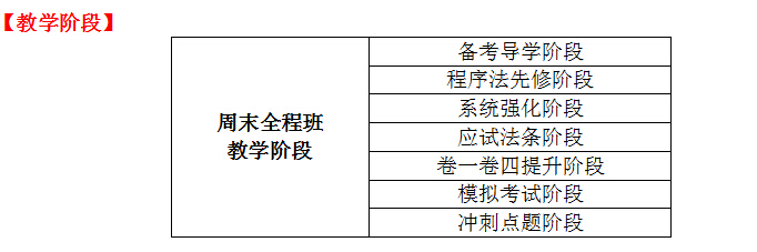 周末系列班次主要是利用周末及法定假期的时间开展培训的一种方式。其特点是不占用工作时间,利用业余时间进行讲授辅导,学员有充分的时间做课前的预习和课后复习,对所学内容及时消化。学员根据我们提供的课表安排学习计划,按部就班的进行复习,从而把庞杂的学习内容科学的分配到五个月的备考时间中。周末班的课程既能满足不同考生的学习需求,又能充分体现了循序渐进的学习规律。
