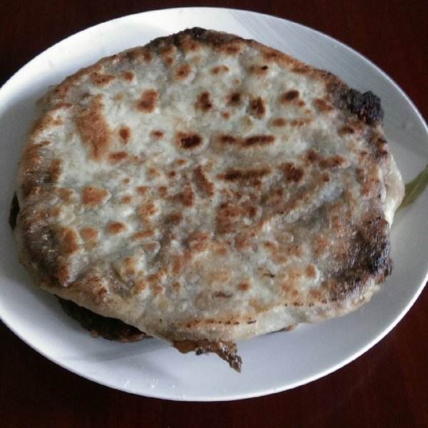 1. 酱香饼+老家肉饼+绿豆粥+黑米粥