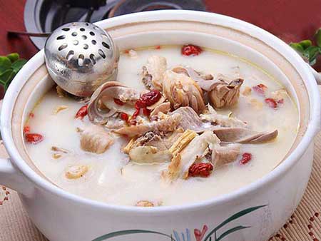 猪肚包鸡的功效:有非常好的滋补作用,胃寒者最适宜吃猪肚包鸡,加上胡椒、小北芪、党参,白果,枸杞等药材,有很好的滋补、驱风、驱寒的作用,肾亏的人吃了减少夜多小便症状;躁热虚火夜梦多的人吃了,能够调整晚上睡眠,一年四季都适宜。