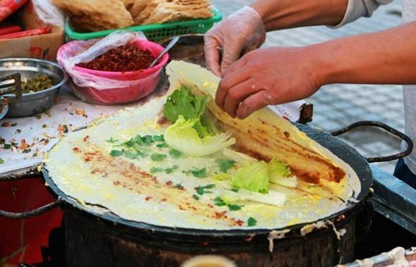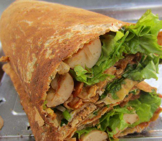 山东杂粮煎饼是一种小吃形式的煎饼。又称煎饼果子。主要特色:香,里外全脆,味美,酱主要以回味感为主。形似荷叶,薄软如纸,香气扑鼻,味美适口。煎饼上摊上鸡蛋,软嫩鲜香,别有风味。山西也有用面粉做的煎饼果子,做法相同.味道也很好。山东煎饼有名,饭店酒楼里是吃不到的,唯有到一个个推着小车的商贩处才能品味到含着浓郁鲁味文化的市民小吃。说它是市民小吃一点也不为过,它是千千万万山东人每天的必备早点,虽然平民之极,但是却也别有一番精致在其中。现在越来越多的人开始注意饮食健康,我们开始寻找可以创业的粗粮项目经过走访调查发现,中华传统小吃煎饼正在为越来越多的人所青睐。