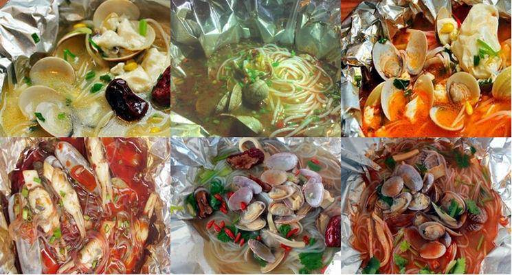 开心花甲又名花甲粉、锡纸花甲。近年在湖南省长沙的夜宵摊流行的风味小吃,源自夜宵街,现在已经风靡全城。具有香、辣、嫩等特点,柔嫩可口,香味逼人,口感丰满而醇厚、新鲜而细腻、绝佳的柔顺口感、余味清爽。开心花甲的制作,就是采用优质铝合金,经优化工艺精工轧制后,高温退火软化及消毒杀菌而成的锡纸包着嫩嫩的花甲和美味的酱汁在火上烤。烤熟后把米粉趁热下到碗里,香气扑鼻, 只叫人垂涎三尺。