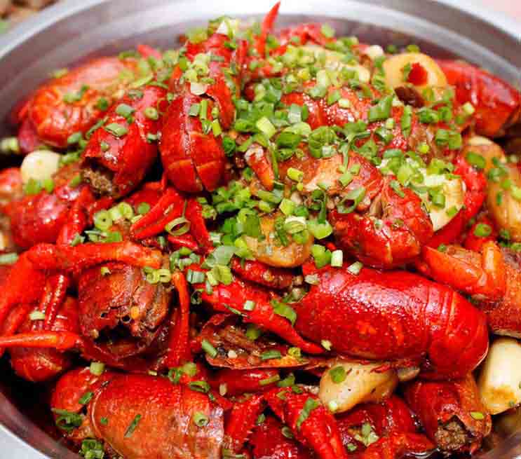 正宗的潜江油焖大虾出自潜江市周矶镇五七大道上一个叫“小李子油焖大虾”的餐馆。每年5至9月,该餐馆生意甚是红火。周边的荆州、仙桃等地的食客常常慕名而至,本地人更是借地利之便,常常自带锅盆,打包回家享受美滋美味。如今油焖大虾是江城夜市大排挡的主打。油焖大虾制作过程的关键就在“油焖”二字上,用于烧制此菜的油每菜式约需五至七两,焖烧的时间在半小时以上。如此焖烧而成的大虾,色泽鲜艳耐看,香辣鲜各味俱全,常常在餐馆美餐之后,还要打包带回家中细细品尝 。油焖大虾采用江汉平原大虾为原料,以潜江特有的“油焖”烹调方法制作。如此做成的大虾,色泽鲜艳耐看,味道香辣鲜美。潜江油焖大虾一般以大排档形式消费。夏日夜晚,工作之余,携家人、朋友于热闹之中品潜江油焖大虾,再佐以啤酒、风味烤串,美味佳境,其乐融融。