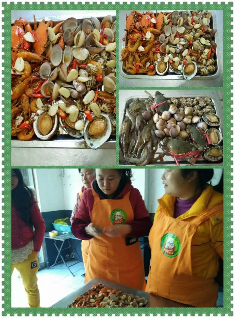 八爪鱼、基围虾、卤虾、卤大闸蟹、卤蚌壳、卤牡砺、香螺、花蟹、肉蟹、尤鱼、墨鱼、鲍鱼仔、等等海鲜类(做法味型:香辣·酱爆)