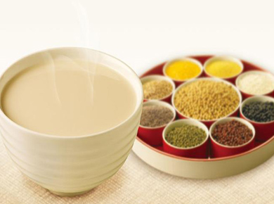 现磨豆浆的制作。红豆、绿豆、黄豆、赤豆、花生、红枣等五谷类豆浆制作 |