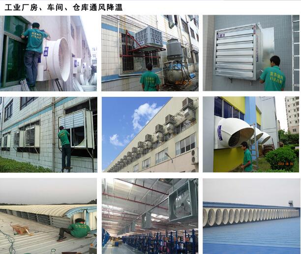 风机+水帘=负压降温选择风机水帘,用空调投资的1/2成本,1/10的空调运行费用就能使室内温度保持在26-30℃。工业领域:纺织、制袜、制衣、玻璃、注塑、橡胶、喷涂、丝印、玩具、电子、家电、鞋类、印刷、食品加工、漂染、洗衣房等有高温的工厂车间。民用领域:网吧、商场、超市、体育馆、食堂、菜市场、候车室及娱乐等场所的空气温度调节。农业领域:大型养殖场、温室大棚及畜牧场等。