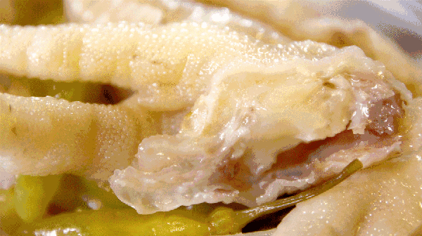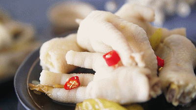 泡椒凤爪是起源于重庆的独特汉族特色小吃,属渝菜小吃类。以酸辣爽口、皮韧肉香而著称。泡椒凤爪既能登大雅之堂,也为普通老百姓所喜爱。此款美食具有开胃生津、促进血液循环的功效。制作过程比较讲究,这样才能使泡椒的劲辣味道沁入凤爪中。正宗的泡椒凤爪丰满洁白,咀嚼时骨肉生香,具有很强的催味功效。