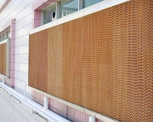 水帘湿帘:是一种特种纸制蜂窝结构材料,是土禾公司引进瑞典先进生产线,采用世界加湿领先技术和高科技材料生产出来的一种环保降温产品。系统的降温过程是在其核心——水帘纸内完成的。当室外的干热空气被风机抽吸穿过水帘纸时,水膜中的水会吸收空气中的热量后蒸发,带走大量潜热,使经过水帘纸的空气温度降低,经过这样处理后的凉爽空气进入室内。同时在冷却过程中,清除室外空气中之粉尘废气、增加进气含氧量,使室内空气更为清新,品质更佳。