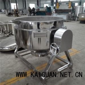 燃气夹层锅是一种新型的高效节能环保设备。本设备的搅拌、点火采用电动控制;排料、火力调节采用手动控制。其物料的加热方式可采用多种燃气加热(如:液化气,天然气,管道煤气),采用开式炉灶明火加热炸炒,具有升温快,温度高,热效率高,便于控制等特点。酱料可充分混合,完全炒熟,炉火纯青,酱香味正。可高温杀死许多有害菌体,保证人体健康。