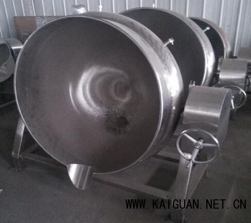 燃气夹层锅是一种新型的高效节能环保设备。本设备的搅拌、点火采用电动控制;排料、火力调节采用手动控制。其物料的加热方式可采用多种燃气加热(如:液化气,天然气,管道煤气),采用开式炉灶明火加热炸炒,具有升温快,温度高,热效率高,便于控制等特点。酱料可充分混合,完全炒熟,炉火纯青,酱香味正。可高温杀死许多有害菌体,保证人体健康。