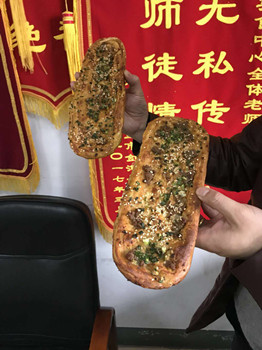 每开一家卷卷烧饼店,都在当地引发排队热潮,每一个烧饼都有小手臂那样长,其味道酱香浓郁,外酥里嫩,制作烧饼的面团经营师傅反复摔打,揉捏,才能做出劲道而让人反复回味的口感!