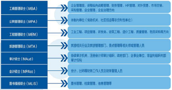 目前考研辅导课程涵盖:工商管理硕士(MBA)、公共管理硕士(MPA)、会计专业硕士(MPAcc)工程硕士(GCT)、工程管理硕士(MEM)、审计硕士(MAud)、图书情报硕士(MLIS)、旅游管理硕士(MTA)等多个项目。