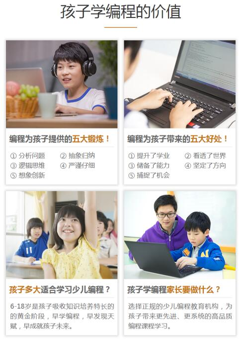 趣味职业兼顾融合:通过趣味编程教育培养孩子编程兴趣,发现孩子编程天赋,并为他们提供成为IT精英的职业编程教育。