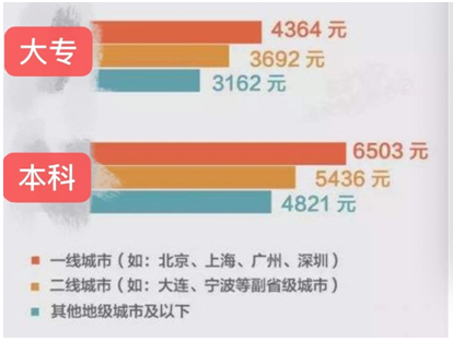 2.大专生和本科生薪资待遇对比(呈现方式:下图)