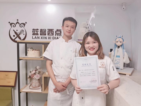 蓝馨西点培训学校教学多年来,培训了多批学员,为社会培养了众多的行业优秀人才。本着“培养一个,成才一个,安置一个” 的教学方针,在教学上追求高质量,着力于培养学生扎实的工作技能、实在的谋生本领,重点培训学员的动手实操能力与创新思路,使得学员离校后就可以获得就业机会。