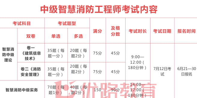 苏州有哪些口碑比较好的消防工程师培训学校。优路教育,教育培训知名品牌,名师执教、通俗易懂、深受广大学员所欢迎,从事工程施工、管理人员消防维保、检测、设计、评估及消防安全管理人员物联网工程,智能物业、计算机、数据分析及相关人员有志于从事智慧消防行业人员均可报名参加考试。