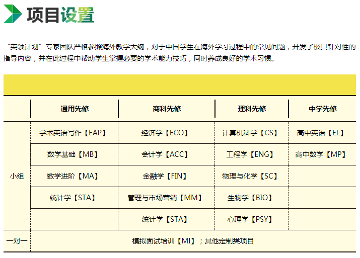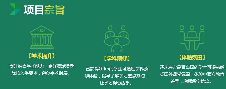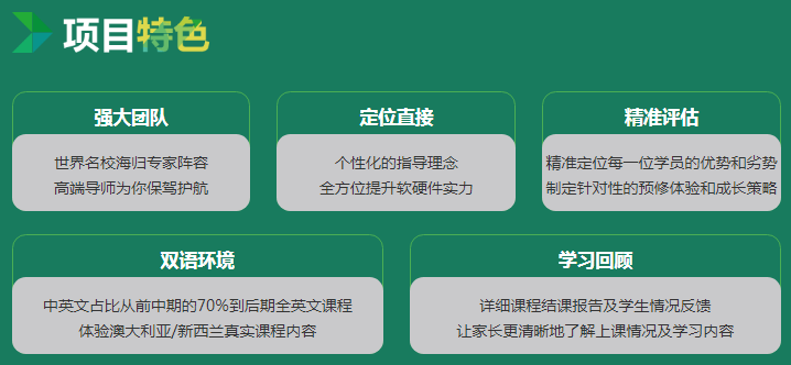 “英领计划”不仅致力于学员申请精英高中和高校预科前的一系列笔面试辅导,更注重学员拿到录取之后及离境前,利用这一空档期,提高学术能力。“英领计划”为了帮助学生克服语言障碍、弥补学术知识点差异、完成思维转化,由海归精英专家团队针对目标为澳大利亚及新西兰的留学生,倾力打造个性化学术成长规划指导方案,还原海外真实课堂,让学生在留学前就能够适应纯英文授课环境,提前掌握专业知识,决胜于千里之外。