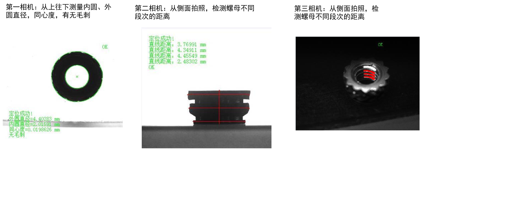 第三相机:从侧面拍照,检 测螺母不同段次的距离