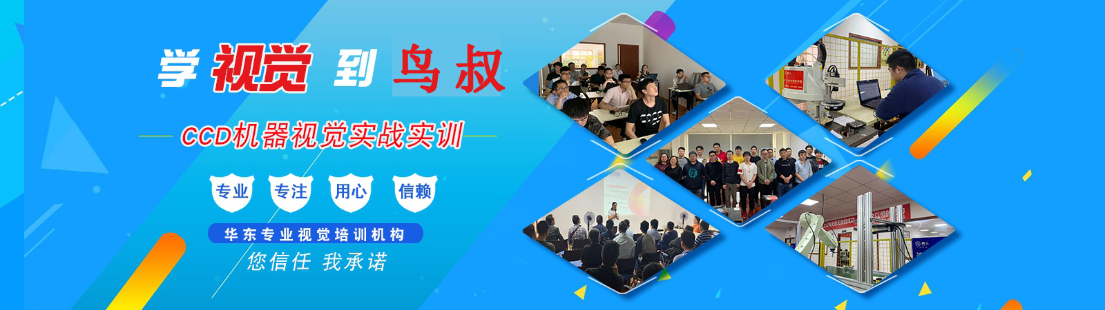 鸟叔机器视觉培训学院(深圳市维景贝视特科技有限公司),是由视觉行业最早一批视觉领导者之一鸟叔(王成群)最早创建的国内第一家专注于机器视觉培训和项目开发的培训学院(公司),公司总部位于中国的南方经济特别行政区-深圳,我们的宗旨是:努力打造成机器视觉界的人才摇篮,机器视觉界的人才供应商。学院目前拥有深圳、东莞、苏州、昆山、重庆、青岛、天津共七个培训点,分布于华南、华东、华北、西南,培训中心累计2000多平米。设备设施齐全,视觉相机、光源、镜头、标定板、机器人、运动控制等等应有具有,同时学员毕业后推荐就业,截止2019年7月28日,累计就业学员800多名,一直维持着高就业率,得到了很多企业的肯定与好评!