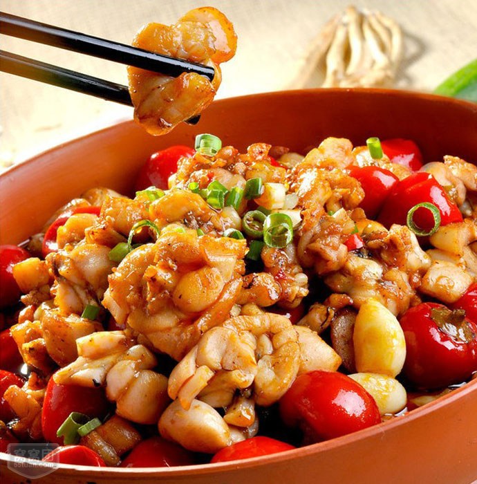 蛙仔鲜滑细嫩,配以青花椒、干辣椒和农家用山泉泡制的青泡椒、泡姜等二十多种调料烹制而成,麻辣烫嫩,鲜香适口。馋嘴跳跳蛙麻辣味正,肉质细嫩,营养丰富,具有利水消肿、解毒的功效。