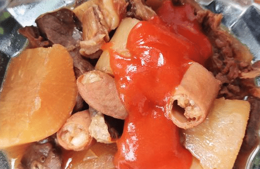 广东人对于吃食的要求还是很高的,在广东,不管是繁华的上下九步行街,还是夜晚热闹大排档,都可以看见大街小巷的牛杂店。说到这个牛杂,其实在很久以前,古人都是不吃这些味道很重的内脏的,不过后来经过厨师们烹饪,这一道牛杂变成了如今随处可见的美味小吃。作为一道味道独特肉多的特色小吃,萝卜牛杂可以说是深受广东人的喜爱了。每次小编一出地铁站,就可以从几百米开外的小吃店里,闻到香喷喷的牛杂味,小编较喜欢吃的就是炖煮到十分入味软烂的萝卜,而且每家牛杂店,都摆放了好几种用来搭配萝卜牛杂吃的酱料,淋上酱料的萝卜吃起来就-加香辣了!