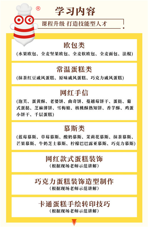 - 1.多年专注餐饮技术,拥有丰富传授经验,保障教学质量;