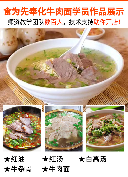 - 3.食为先奉化牛肉面学员经营的牛肉面馆遍布祖国大江南北,很多原来开店的老板都特意上门找我们学习汤粉配方;