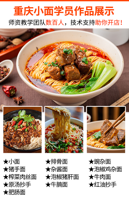 ,逾10年实力品牌优势各地直营就近学习,学技术开店创业!重庆小面面条劲道顺滑,汤料香气扑鼻,口感好,味道浓厚,一种火辣辣的性格,更是一种豪迈的江湖情怀。很多人早上都喜欢去店里面点这不同于其它的口味。现场师傅示范实际操作教学,教技术配方实操。好的技术、材料制作出来的味道很好,还很有营养,卫生干净,就给人一种别有味道的感觉,吃起来味道好。