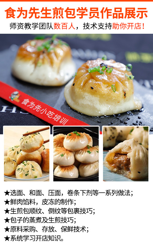 ,逾10年实力品牌优势各地直营就近学习,学技术开店创业!生煎包味鲜浓郁的馅汁,肉香、油香、葱香、芝麻香喷薄而出。金黄酥脆的生煎包底部,够脆够酥够焦够香,咬起来还会有“咔嚓咔嚓”的香脆感。现场师傅示范实际操作教学,教技术配方实操。好的技术、材料制作出来的味道很好,还很有营养,卫生干净,就给人一种别有味道的感觉,吃起来味道好。