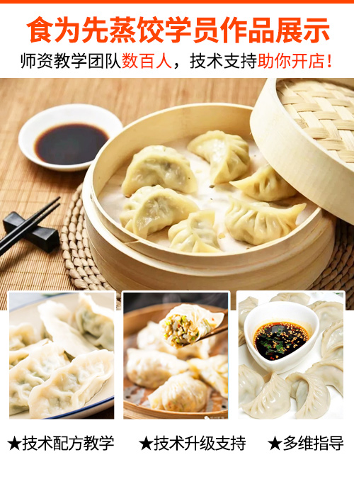 ,逾10年实力品牌优势各地直营就近学习,学技术开店创业!蒸饺味道鲜美,营养丰富做出来的蒸饺看着便很是有食欲,外皮柔软筋道,馅料鲜嫩多汁,吃起来一点儿都不柴。配上蘸料,一口一个很过瘾。很多人早上都喜欢去店里面点这不同于其它的口味。现场师傅示范实际操作教学,教技术配方实操。好的技术、材料制作出来的味道很好,还很有营养,卫生干净,就给人一种别有味道的感觉,吃起来味道好。