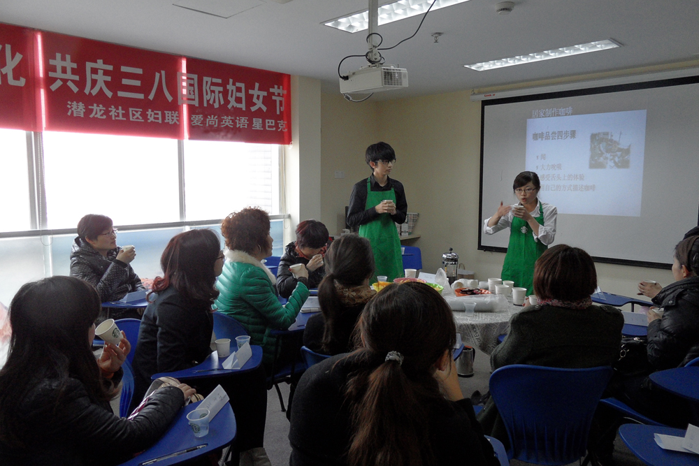 在三八妇女节即将来临之际,宁波爱尚英语联名星巴克,潜龙社区共庆三八妇女节。在宁波爱尚英语中外教老师的带领下部分学员参加了该活动。