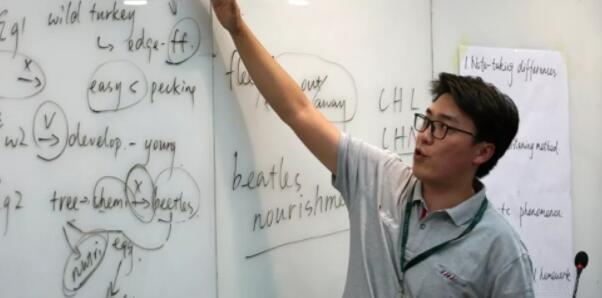 十几分钟车程后,本次活动的工作人员带领南开大学的学生到达苏州新东方学校苏州中心校区进行参观。首先,南开大学的学生在引导下参观了新东方国外考试部的批课。