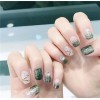 第四步:用光疗笔沾取银色闪粉甲油胶,涂抹在甲面前端,再用小笔调整下闪粉,后照灯,最后为甲面上一层封层,照灯60秒就可以了。
