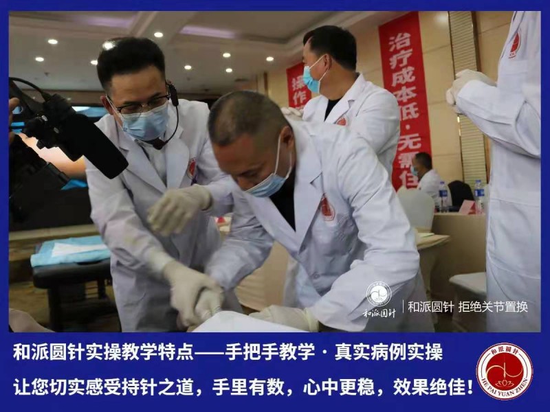 常年举办专利和派小圆针治疗颈腰椎病、膝关节及疑难杂症特色技术临床速成班,我们的教学方法是重点强调临床诊断与治疗,打破以理论为主的教学模式,老师给学员讲解治疗思路、设计治疗方案。学员与老师共同动手治疗,手把手教学,当场指导学员问题所在,讨论、分析、答疑,举一反三使学员彻底学到小圆针治疗颈腰四肢关节病的精髓。
