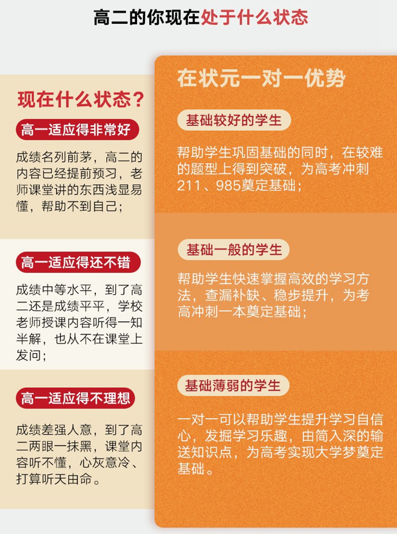 状元教育高中一对一辅导不仅仅只有学科老师一人在服务,还有班主任、教务处、教研处等定期跟踪回访监督,了解孩子的学习、心理各方面进展,定期测试并及时调整教学难度进度,改进辅导方法,以确保学习成果。